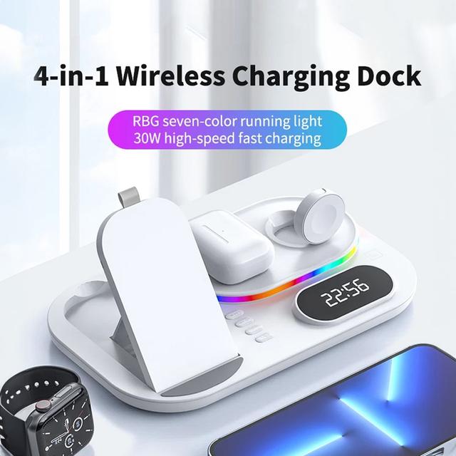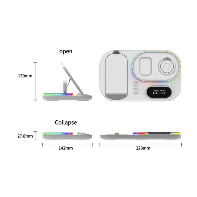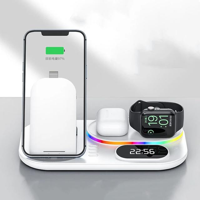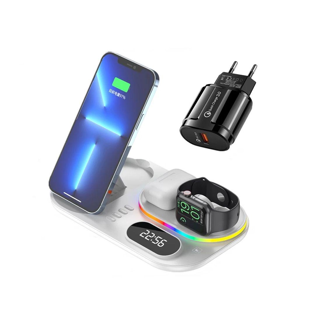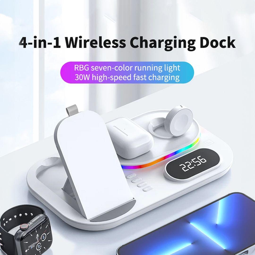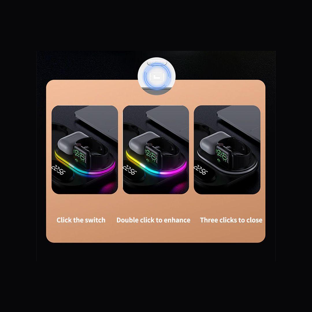 Wireless Charging Station with RGB Light and Digital Clock
