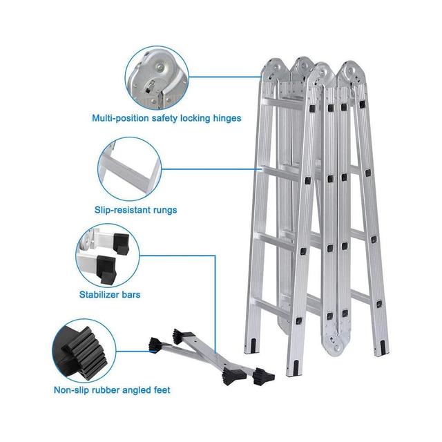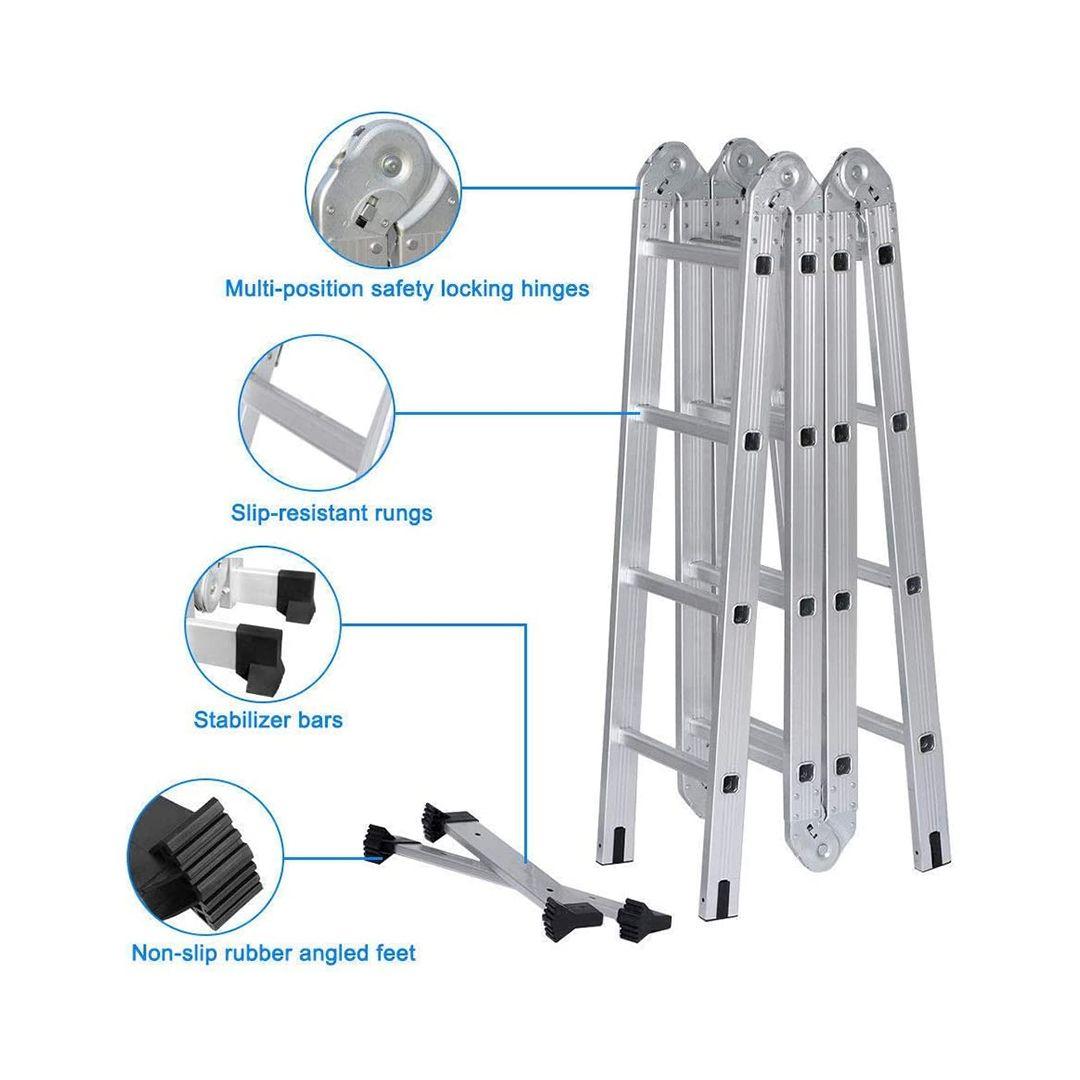 Get yourself a Multi-Purpose Aluminium Ladder which is built to Industrial-grade construction and superior quality. Use this ladder as a step ladder, double step ladder, extension ladder, mezzanine ladder, multi-level ladder, scaffold or a stair-step scaffold. Made with high-quality aluminium, lightweight and rust-free, you won’t need to buy another ladder.