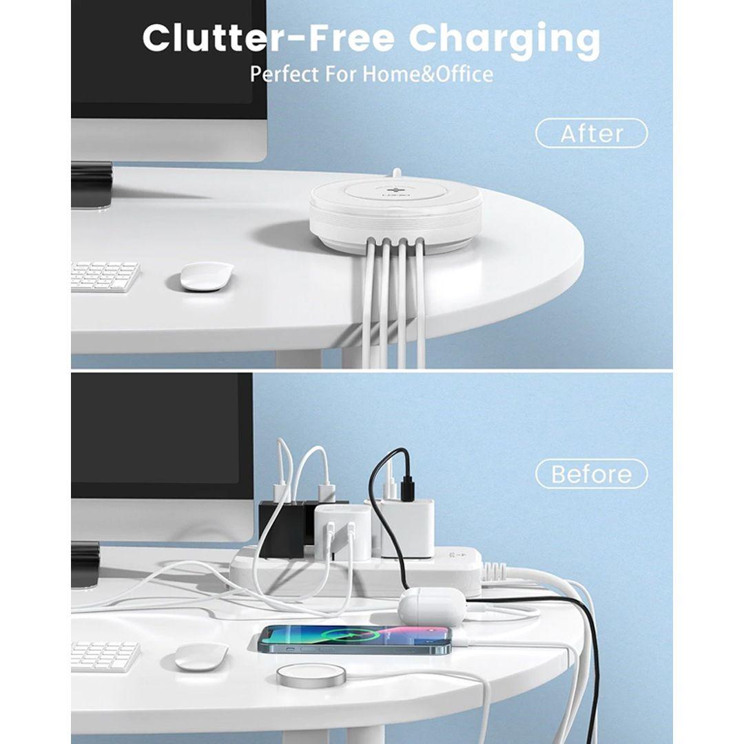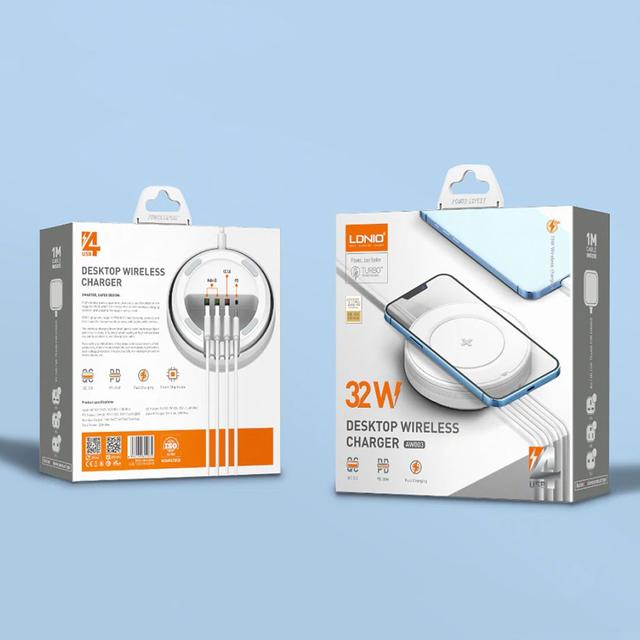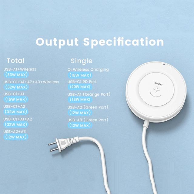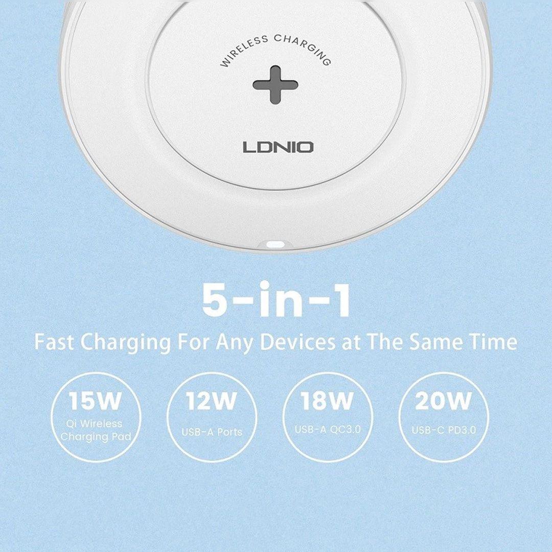 LDNIO 32W Desktop Wireless Charging Station with 4-Port PD/QC3.0 Fast Charging