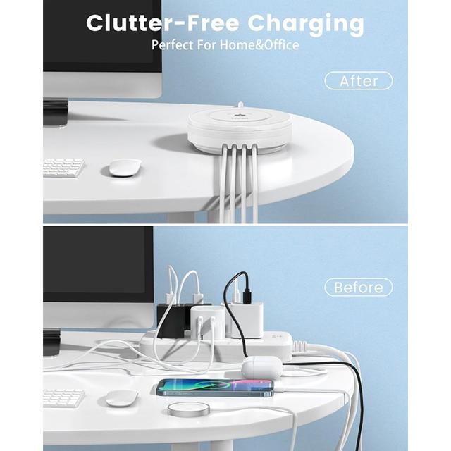 【4-Port Fast Charging Station】20W PD3.0 type c prot*1, 18W QC3.0 USB port*1,12W USB port*2. Smart Charging Technology automatically identifies connected devices and their unique charging requirements. Charge up to 4 of your devices simultaneously at full speed, greatly improving charging efficiency.