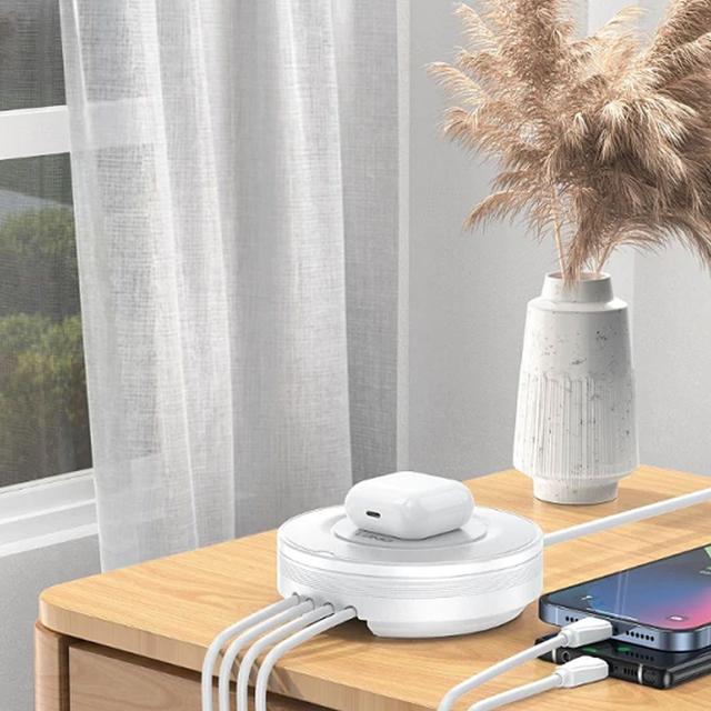 【Give You A Neat Desktop】5 in 1 wireless charging hub with an A 5ft power cord, charge up to 5 of your devices at once without the clutter of cables and wires. Consolidate your devices, reduce space clutter, and put neat and organized charging into practice. Suitable for home and office use, or for multiple people to use together.