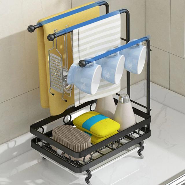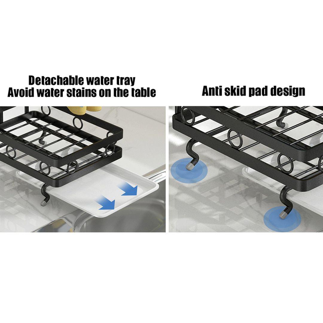 Multipurpose Carbon Steel Kitchen Sink Caddy Organizer Countertop Adhesive Rag Sponge Holder with Draining Plate