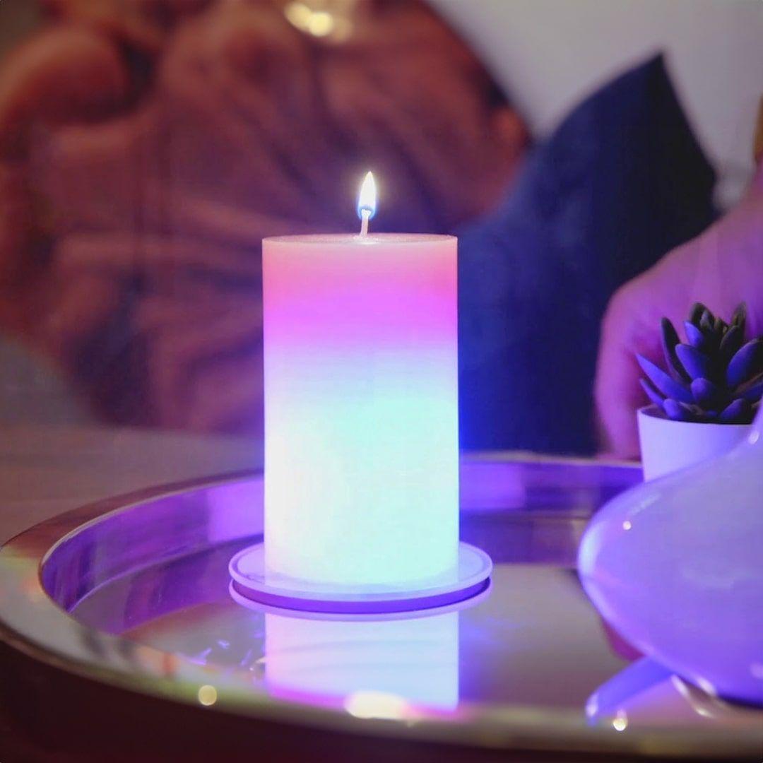- Just light the wick to activate Mood Magic's continuous cycle of comforting colors.