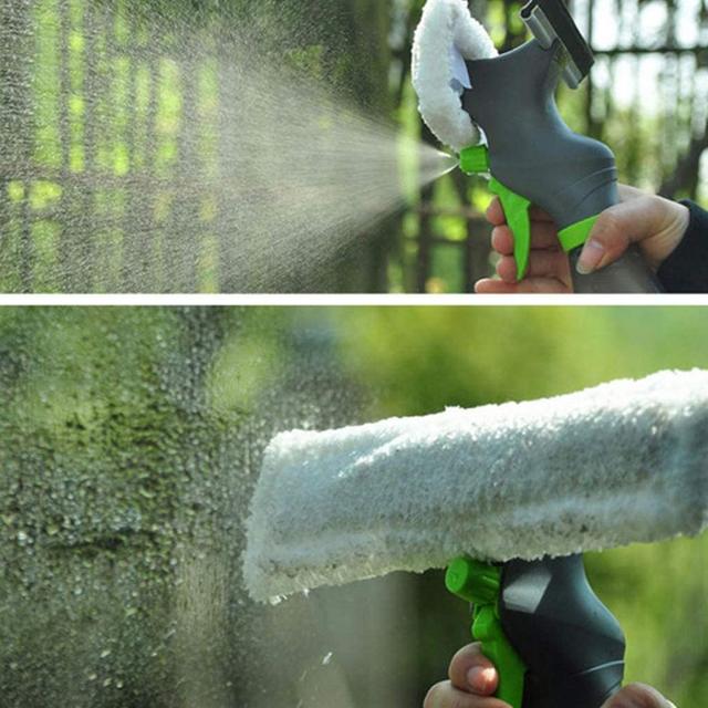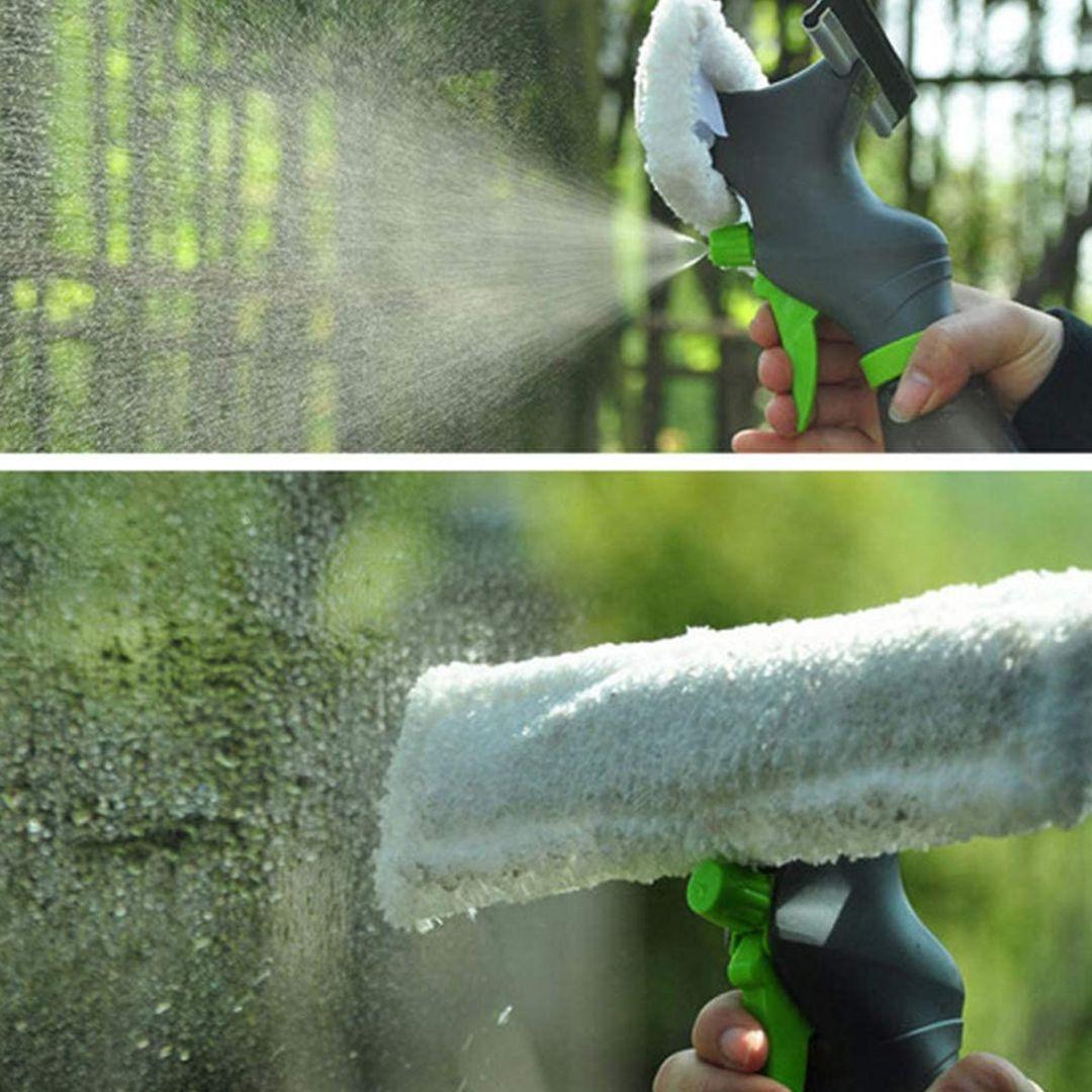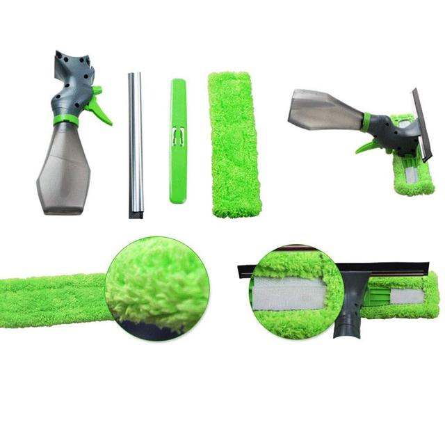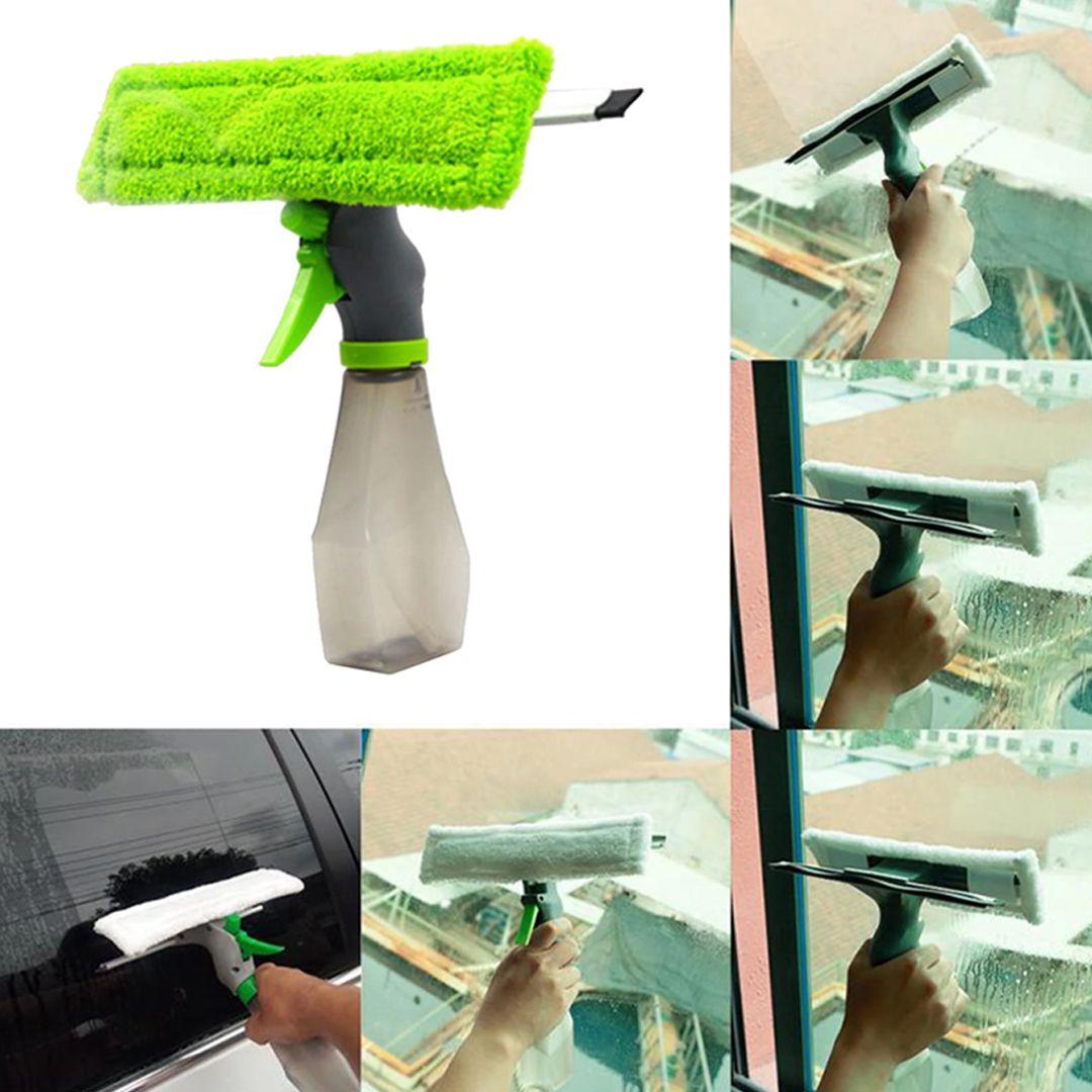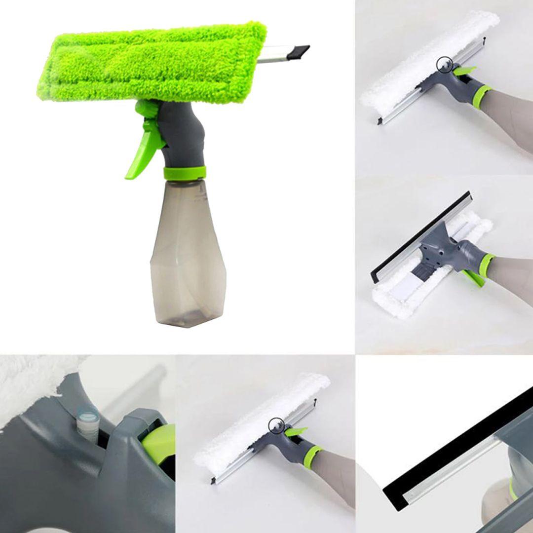 3 In 1 Window Cleaner Spray Bottle Wiper Squeegee Microfibre Cloth Pad Kit