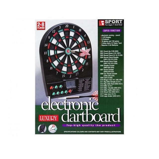 The Electric Darts Kit is a skill game where you have to score as many points as possible with good aiming. There are 159 different game modes to choose from on the board, with the set you can even have a tournament to see who is the smarter player. The game can be played by 2-8 players at a time, the board is easy to hang on the wall. Board diameter: 26 cm.