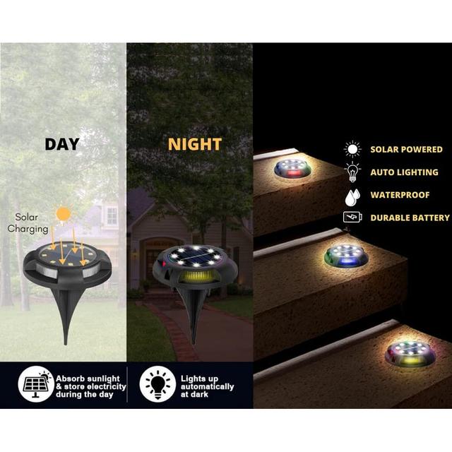 8 LED Lights Solar Ground Light Outdoor Waterproof for Garden Decor (1 Pc)