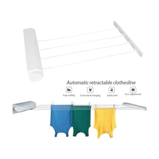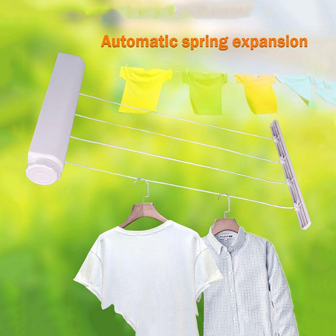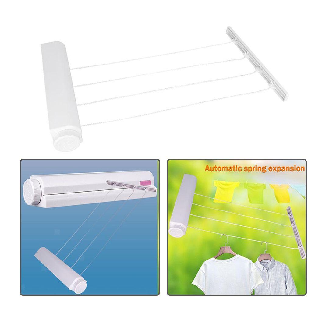 Clothes 4-Line Rack Wall Clothing Hanger Washing Rope Bathroom Accessory