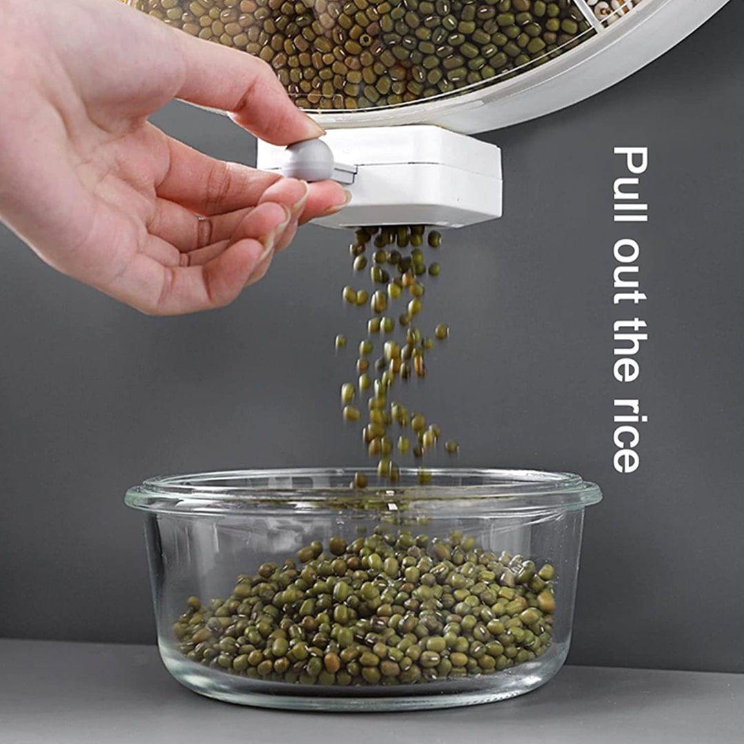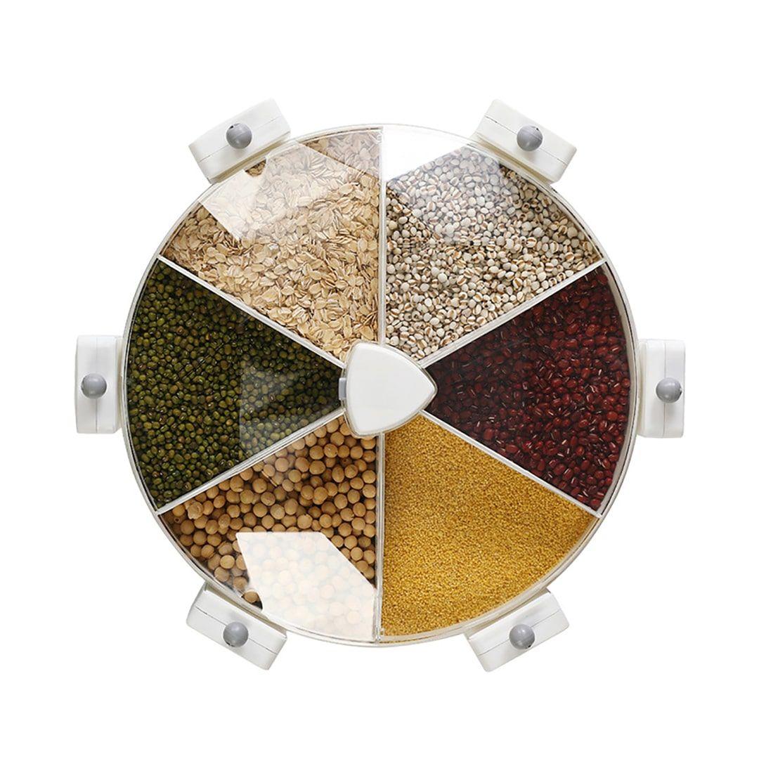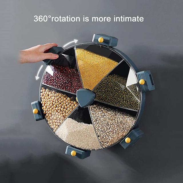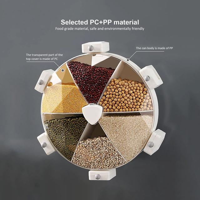 Wall-Mounted Rotating Cereal Dispenser - 6 Compartments for Dry Food Storage