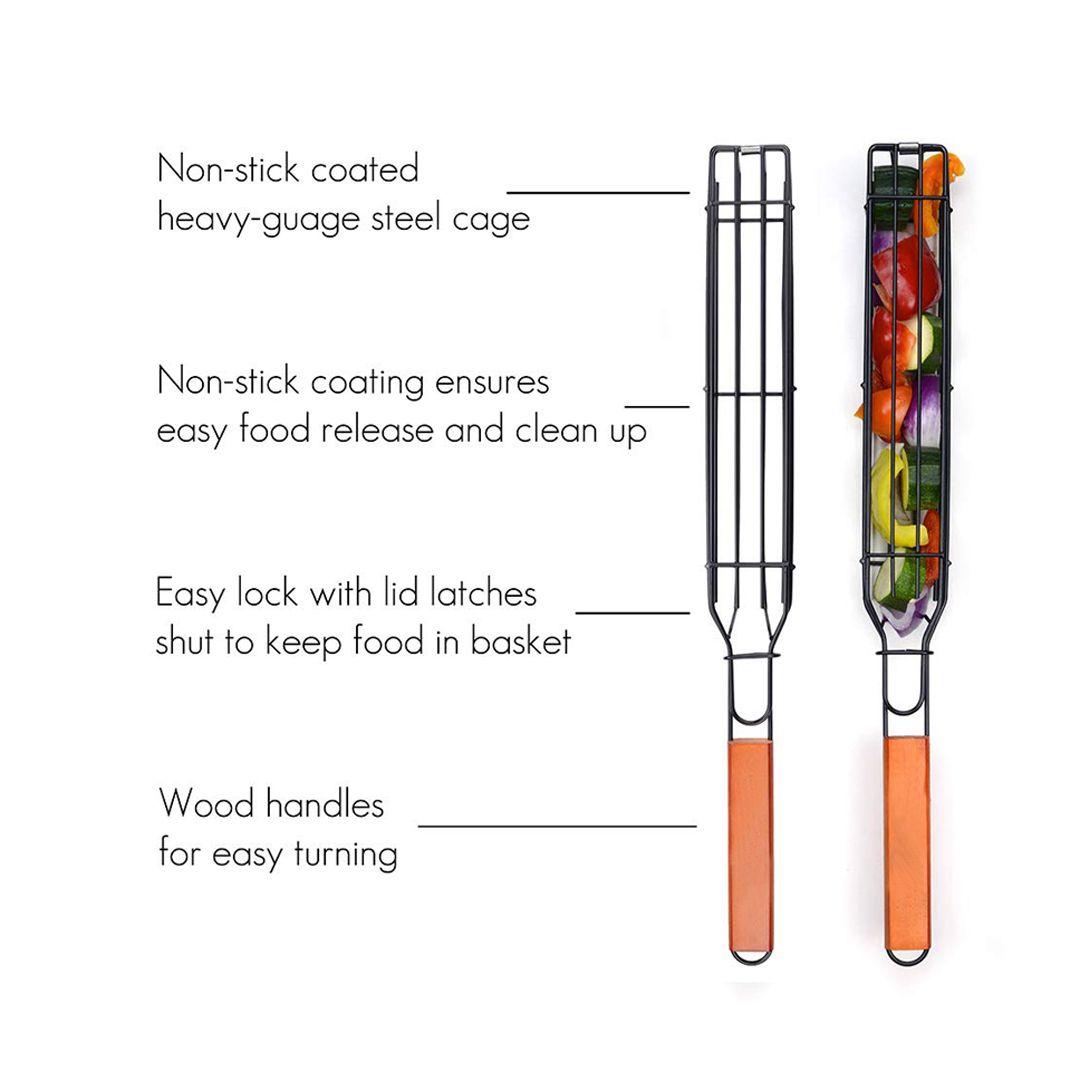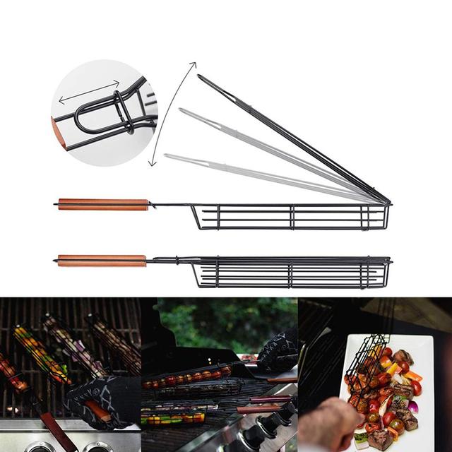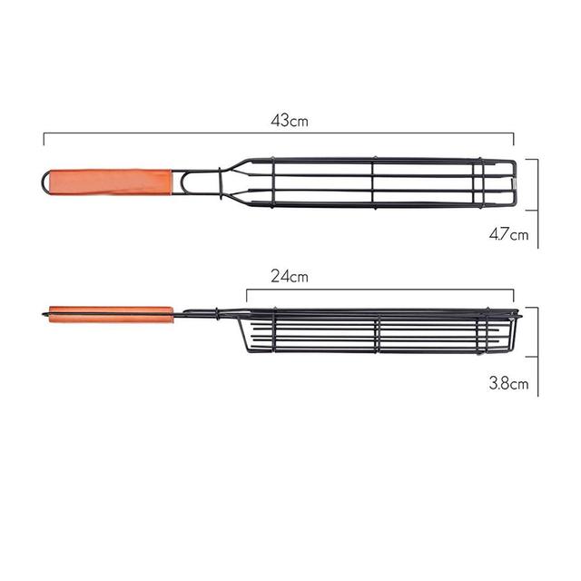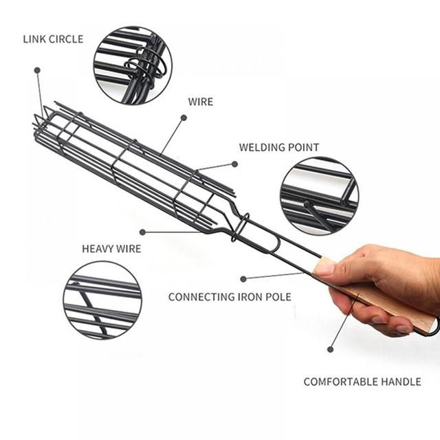 - The barbecue basket is made of high-quality iron and log materials, which is wear-resistant, high-temperature resistant, durable and has a long service life.