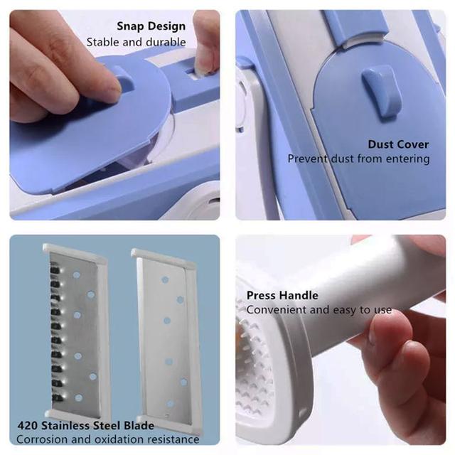 High quality: our products are made from premium healthy material. The blades are made of 420J stainless steel, sharp and durable. Our vegetable slicer passed EU test quality test, LFGB, FDA and PAKs testing.
