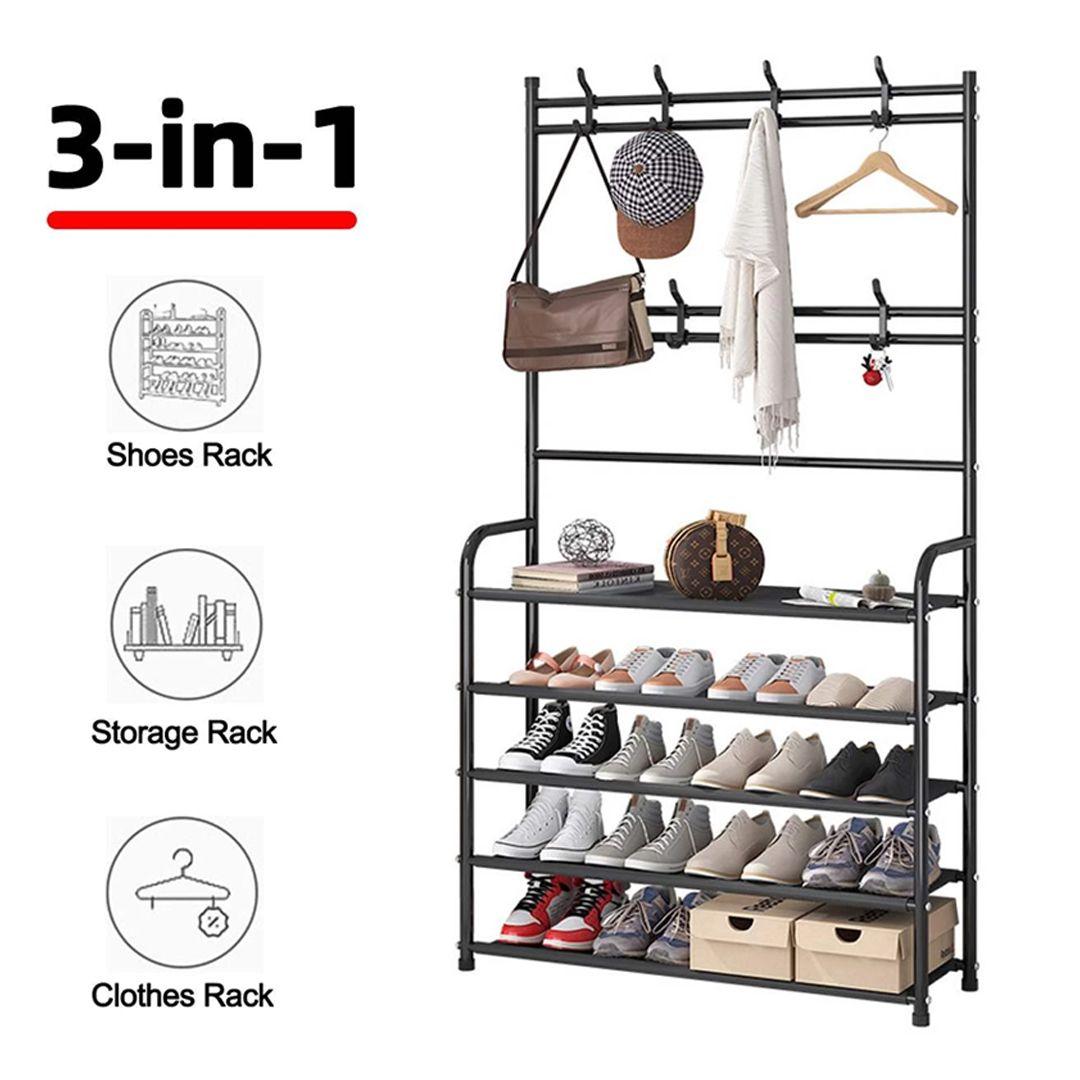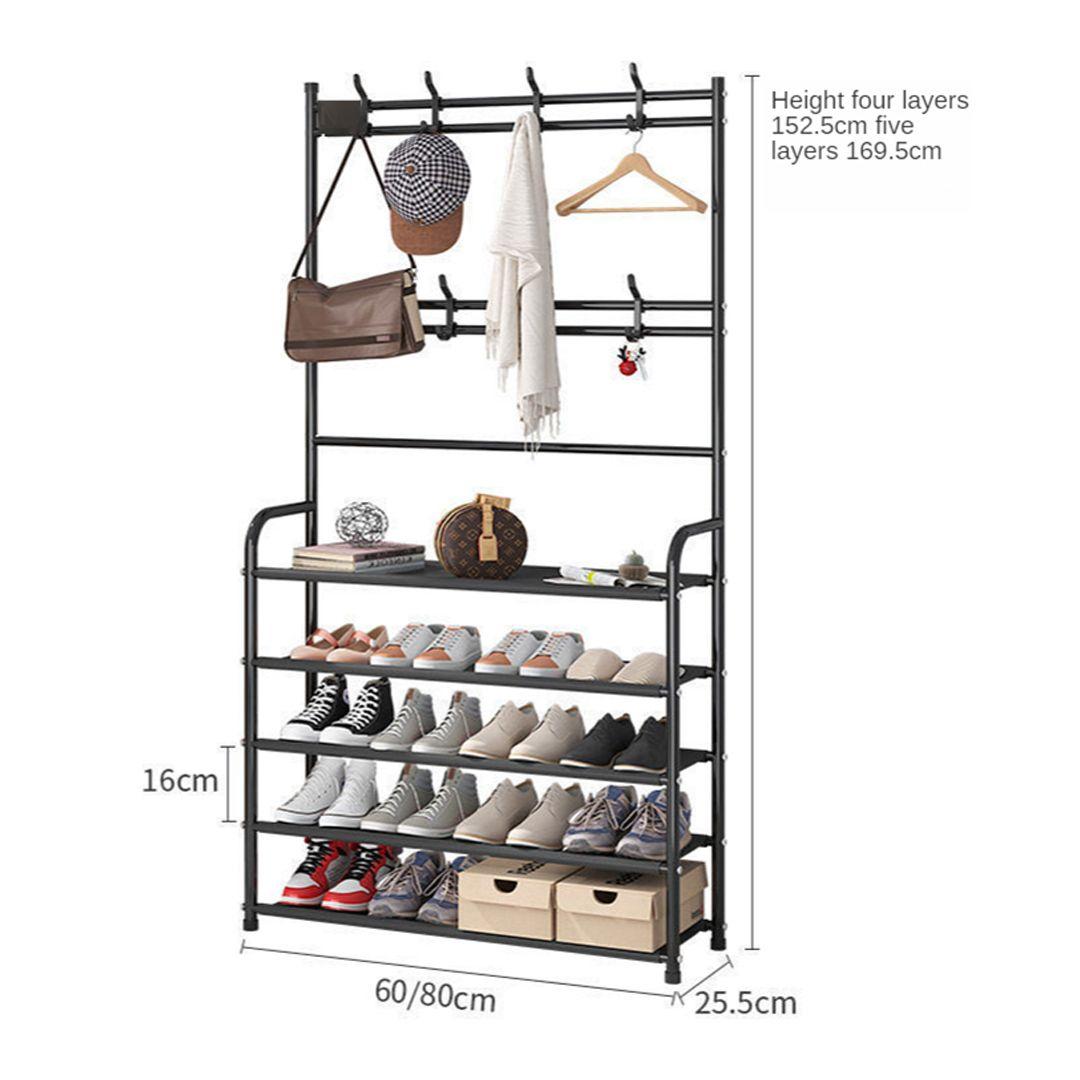 5 Tier Floor Clothes Hanger Coat Rack Hanger Storage Wardrobe Clothing Drying Shoes Racks Multifunctional