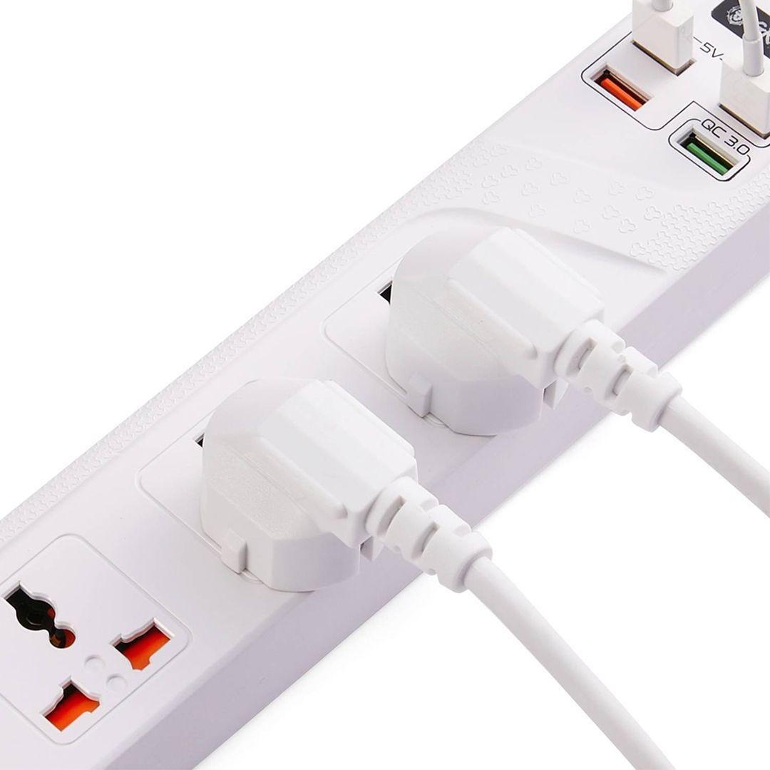 Green 4 AC 4 USB 3.4A QC3.0 Multiport Smart Power Socket 3000W 3M with Overload Protection, Multi-Power Plug Extension, Power Strip with USB Charging Suitable for Home & Office