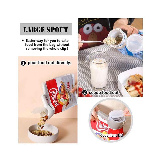 This smart clip keeps everything securely sealed, and it comes with a lid that lets you pour easily without opening the entire bag or wasting the contents!