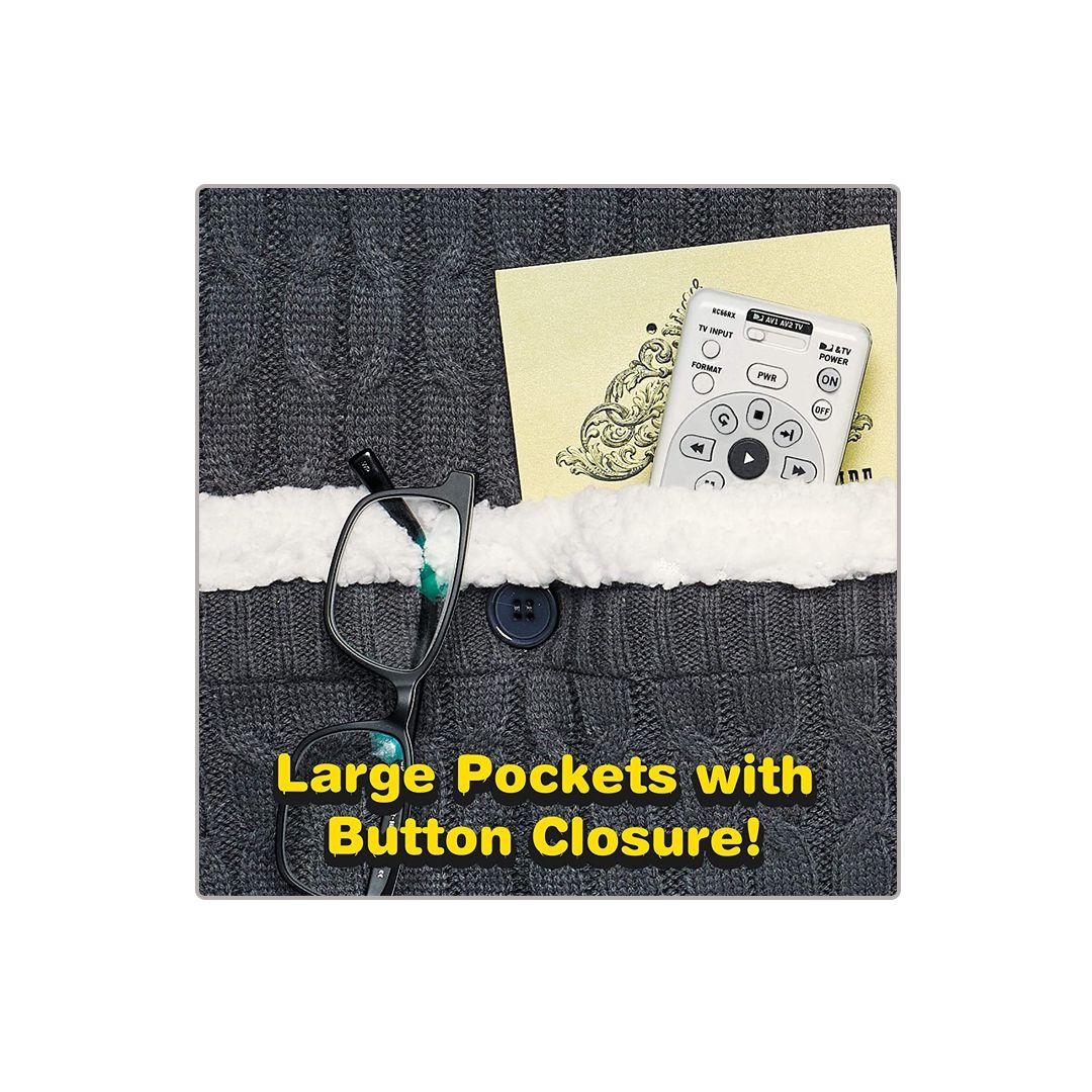Functional and practical: Large pockets with button closures store your important items like your phone, glasses, keys, or even the remote.