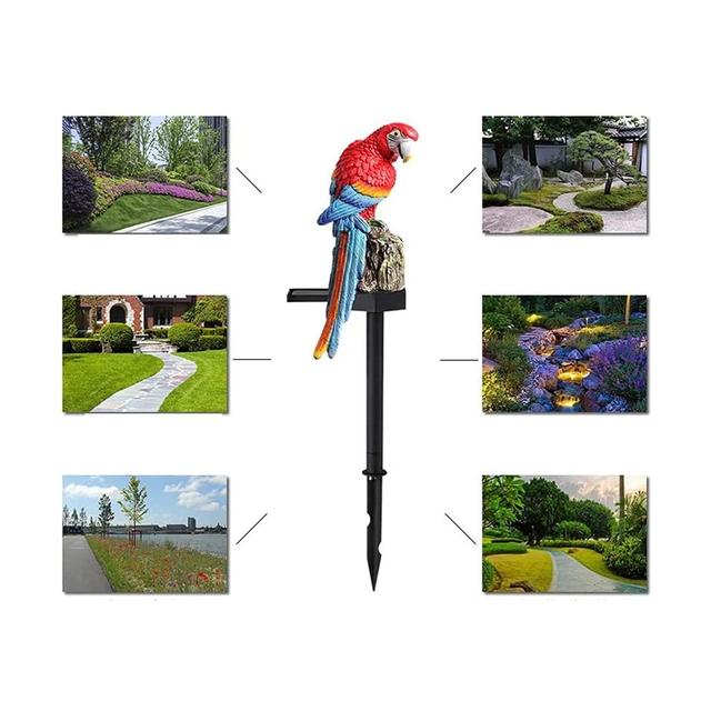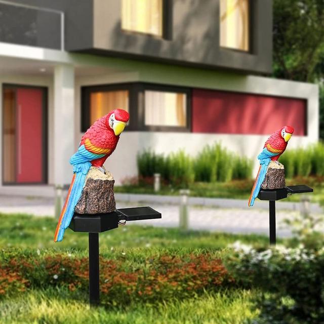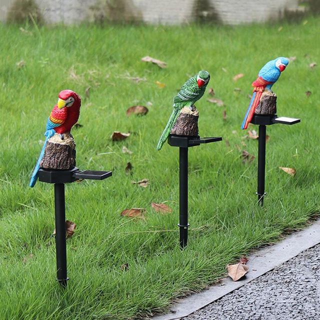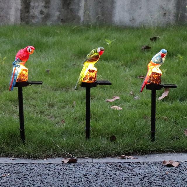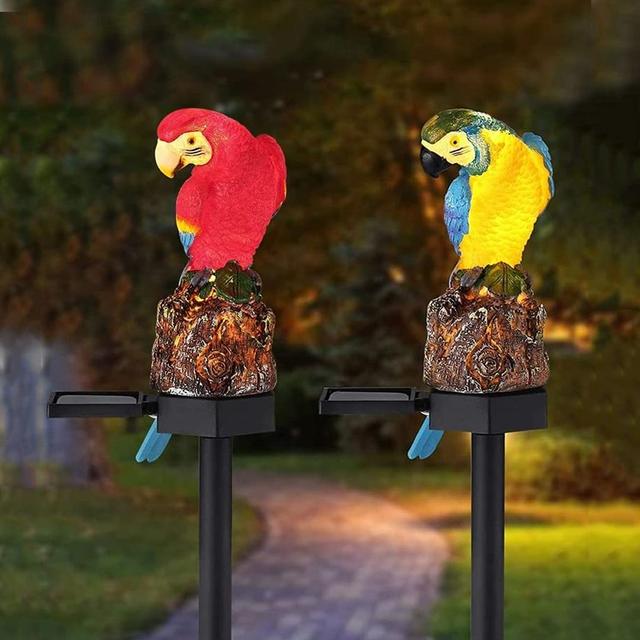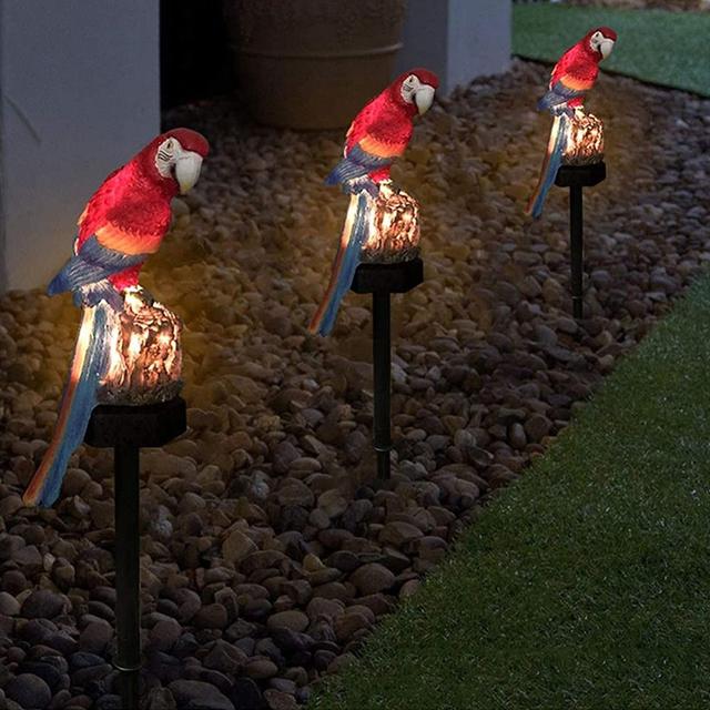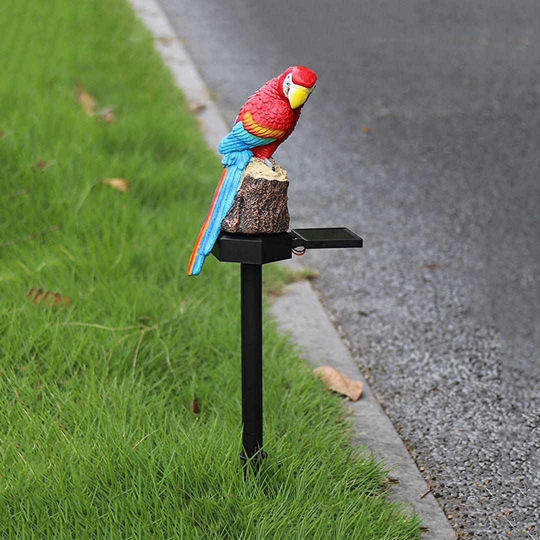 Adds a lively touch: The parrot's brightly colored design creates an eye-catching aesthetic, day or night.