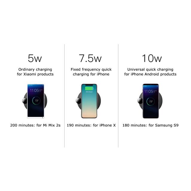 9V fast charging, 10W power, it is compatible with all 5V and 9V Qi-enabled smartphones.