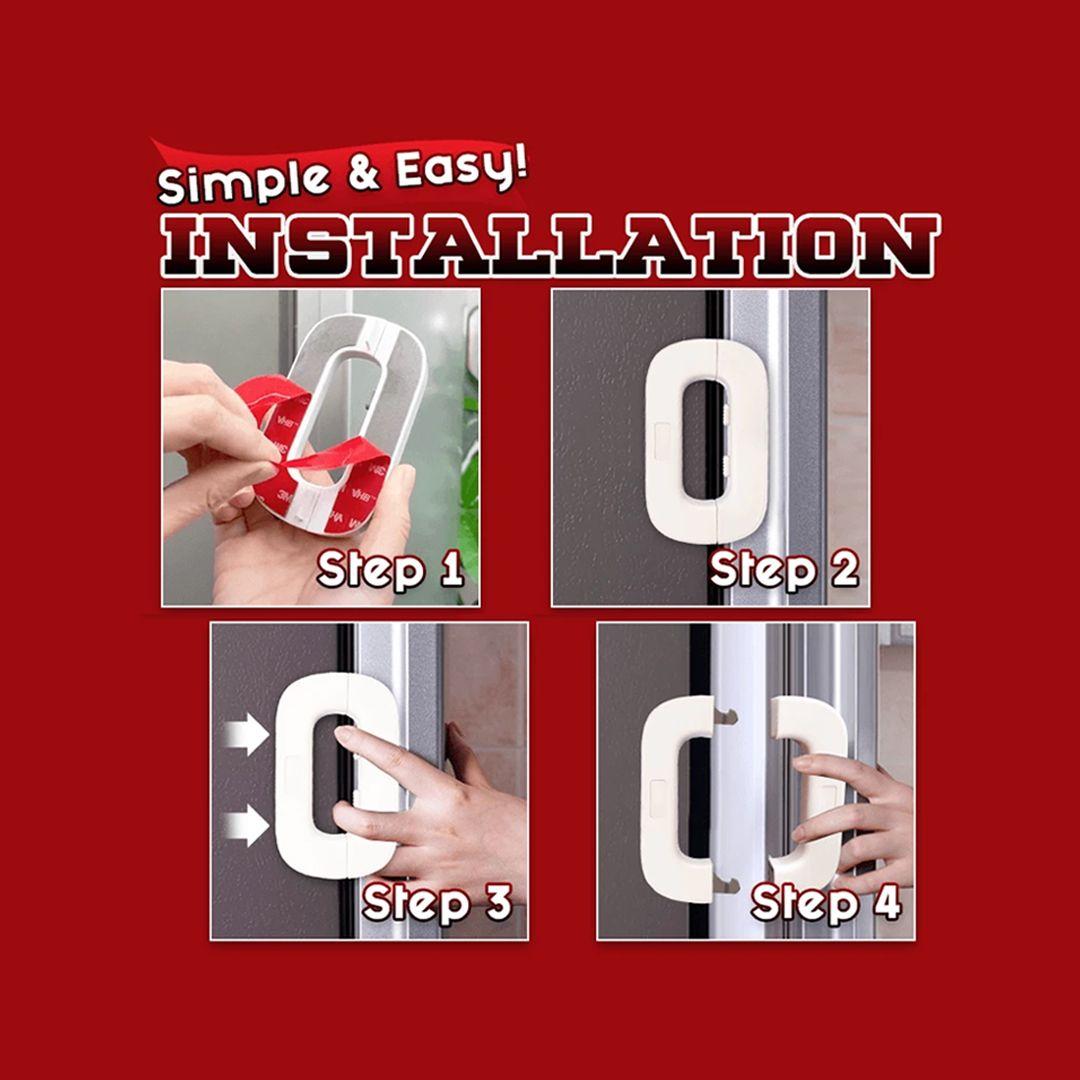 Easy to install! No other tools are needed. Paste it on the side of the door and click the 2 buttons to open it. Safely seal any doors, such as refrigerators, drawers, cabinets, etc.