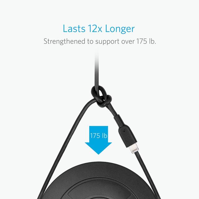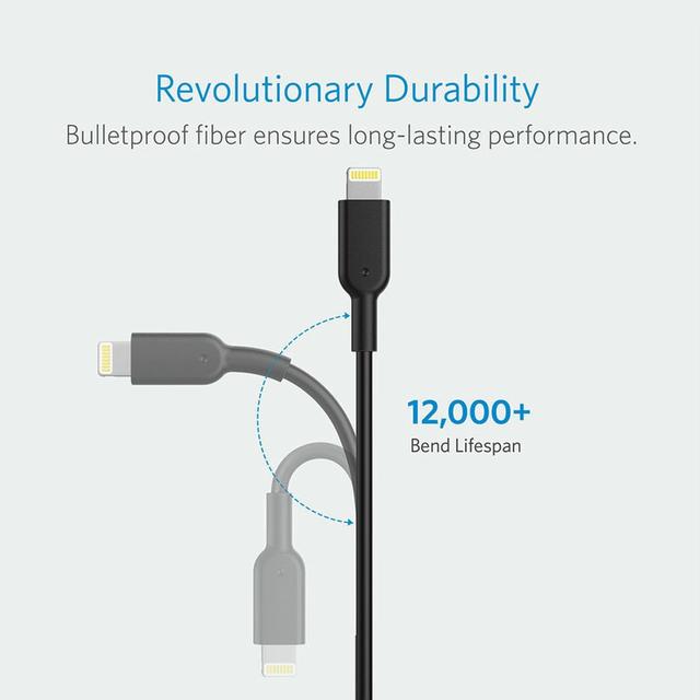 PowerLine II tolerates being bent over 12,000 times, lasting an enormous 12x longer than other Lightning cables.
