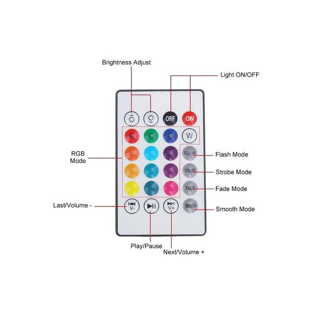 It controls the colors and music using a 24-button remote control, allowing you to choose the color that suits your mood.