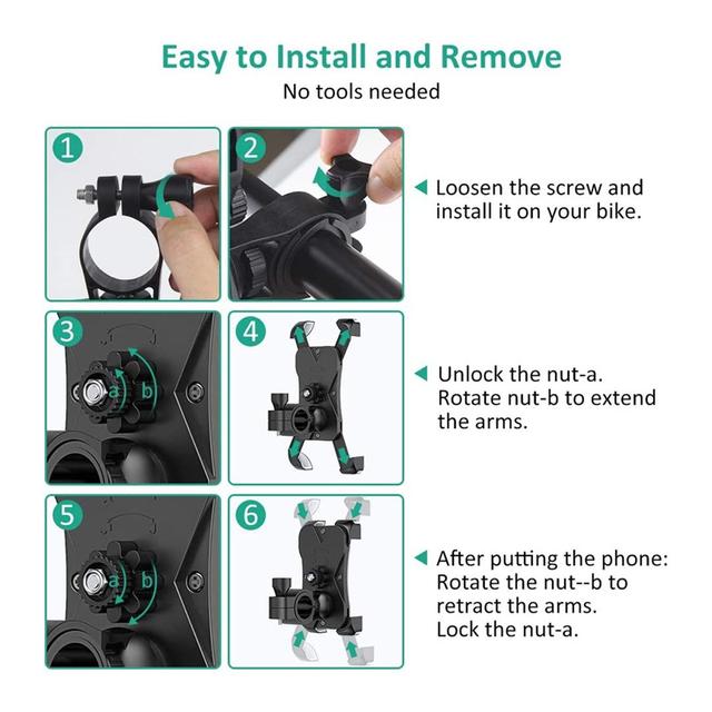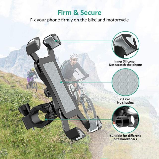 【Stable & Safe】The bike phone holder comes with 4 wear-resisting silicone claws and non-slip PU pad, which effectively prevent your phone from scratches. Besides, this design can catch your phone firmly. And the phone doesn't shake and wobble when riding.