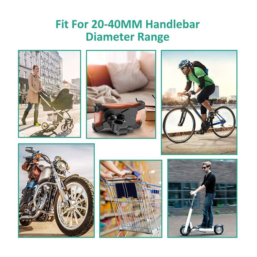 【Handlebar Compatible】Mount base diameter can be adjustable from 0.8 inches (2.0cm) to 1.6 inches (4.0cm)for any handlebars of bicycle/bike/motorcycle/scooter/motorbike/road bike/mountain bike/street bike/electric bicycle/electric bike/spinning bike (with cylindrical handle bar)