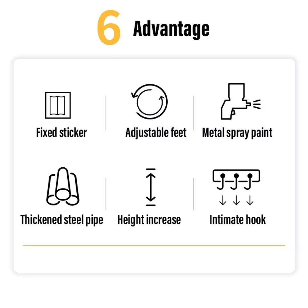 Adopt thickened steel pipe, ensures long-lasting durability, equipped with adjustable foot pad on four feet, easily deal with indoor water and ground irregularities problem