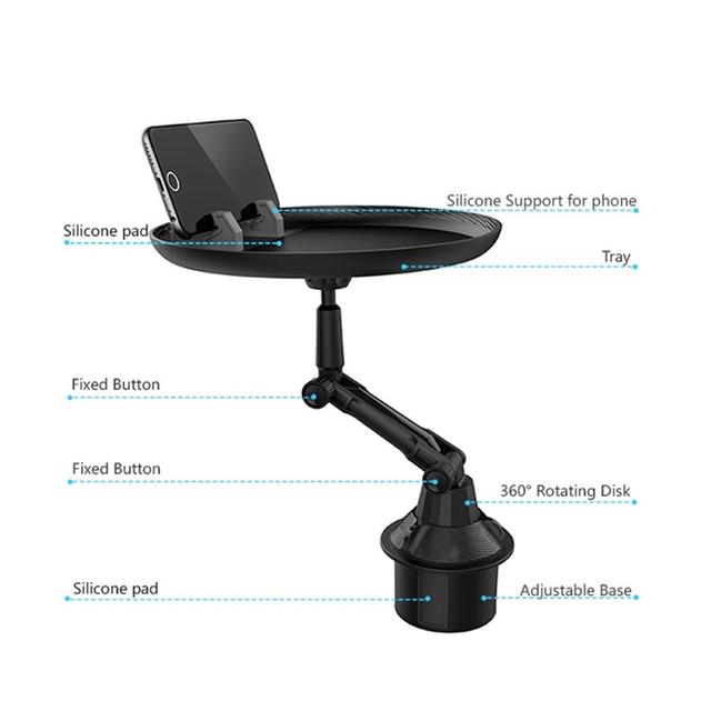 ● With a 8" surface for your meal or other items and a padded smartphone stand, the car cup holder tray will add practicality to your vehicle while keeping it organized.