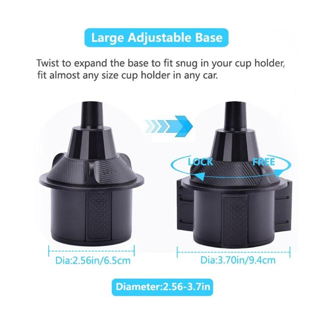 ● Adjustable and fits firmly in the cup holder for car, or SUV, Base expands to fit any vehicle cup holder; no suction or adhesive required.