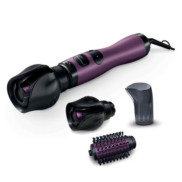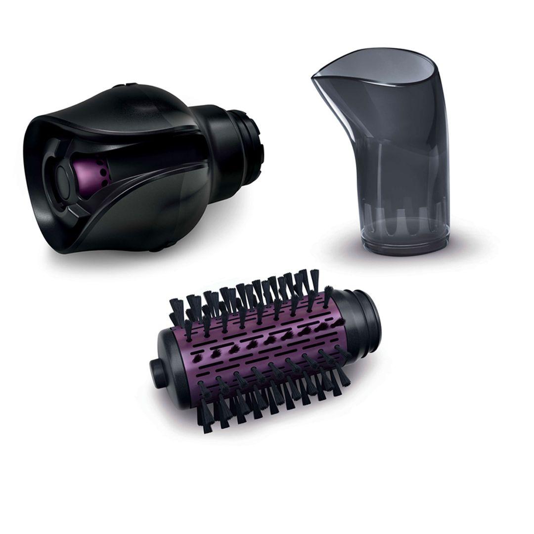 The new to the world auto-rotating airstyler comes with a unique curling attachment for soft curls and waves, with a round brush for a voluminous bouncy look and with a nozzle for gentle drying. A caring drying & styling experience.