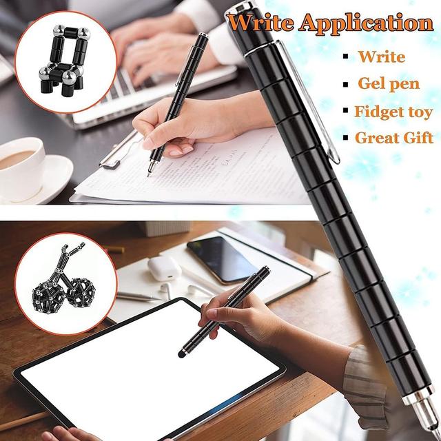 Multifunctional Metal Magnetic Fidget Pen (Gel Pen and Stylus Pen) Moldable to Reduce Stress