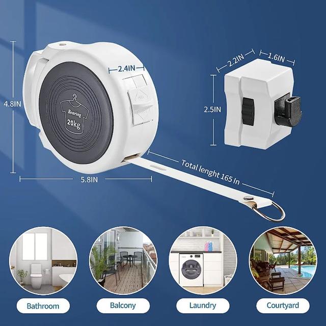 Retractable Clothes Dryer with Hanging Hole Windproof Wall Mounted for Drying and Hanging Clothes