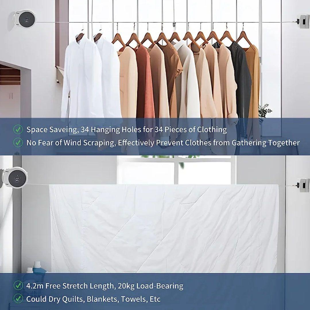 Want to dry your clothes comfortably and without taking up space? This retractable dryer keeps your laundry safe, even in windy conditions, and provides you with a clean and tidy space both indoors and outdoors.