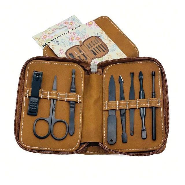 8 in 1 Stainless Steel Nail Manicure Pedicure Nail Care Set with Leather Case