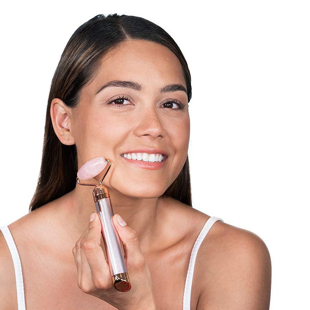 Finishing Touch Flawless Contour Vibrating Rose Quartz Facial Roller & Massager