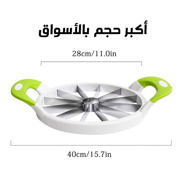 Extra Large Watermelon Slicer Cutter Comfort Silicone Handle,Home Stainless Steel Round Fruit Vegetable Slicer Cutter Peeler Corer Server for Cantaloup Melon, Pineapple, Honeydew
