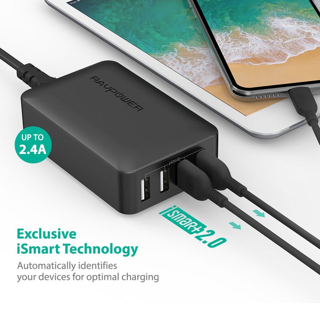 With the RAVPower Multi-Port Charger, you won't need more than one device to charge all your devices. Thanks to Quick Charge 3.0 and iSmart 2.0 technology, you get ultra-fast and safe charging performance, whether you're at home or the office.