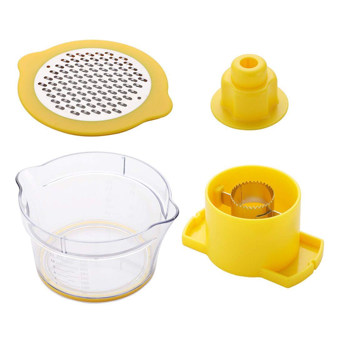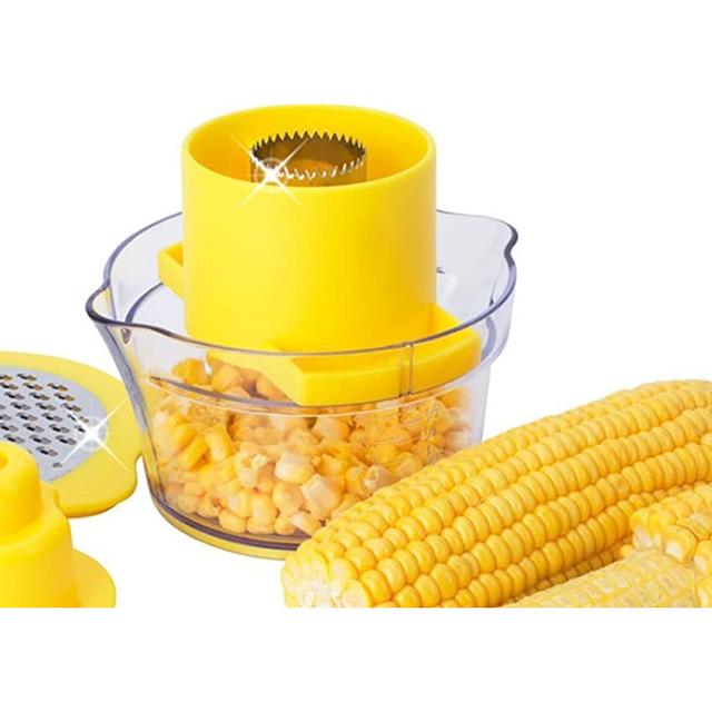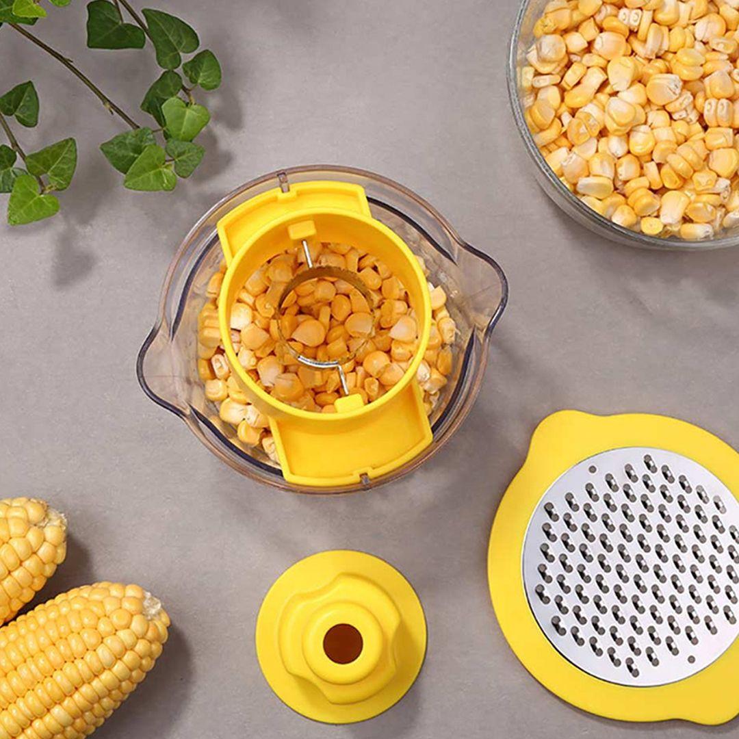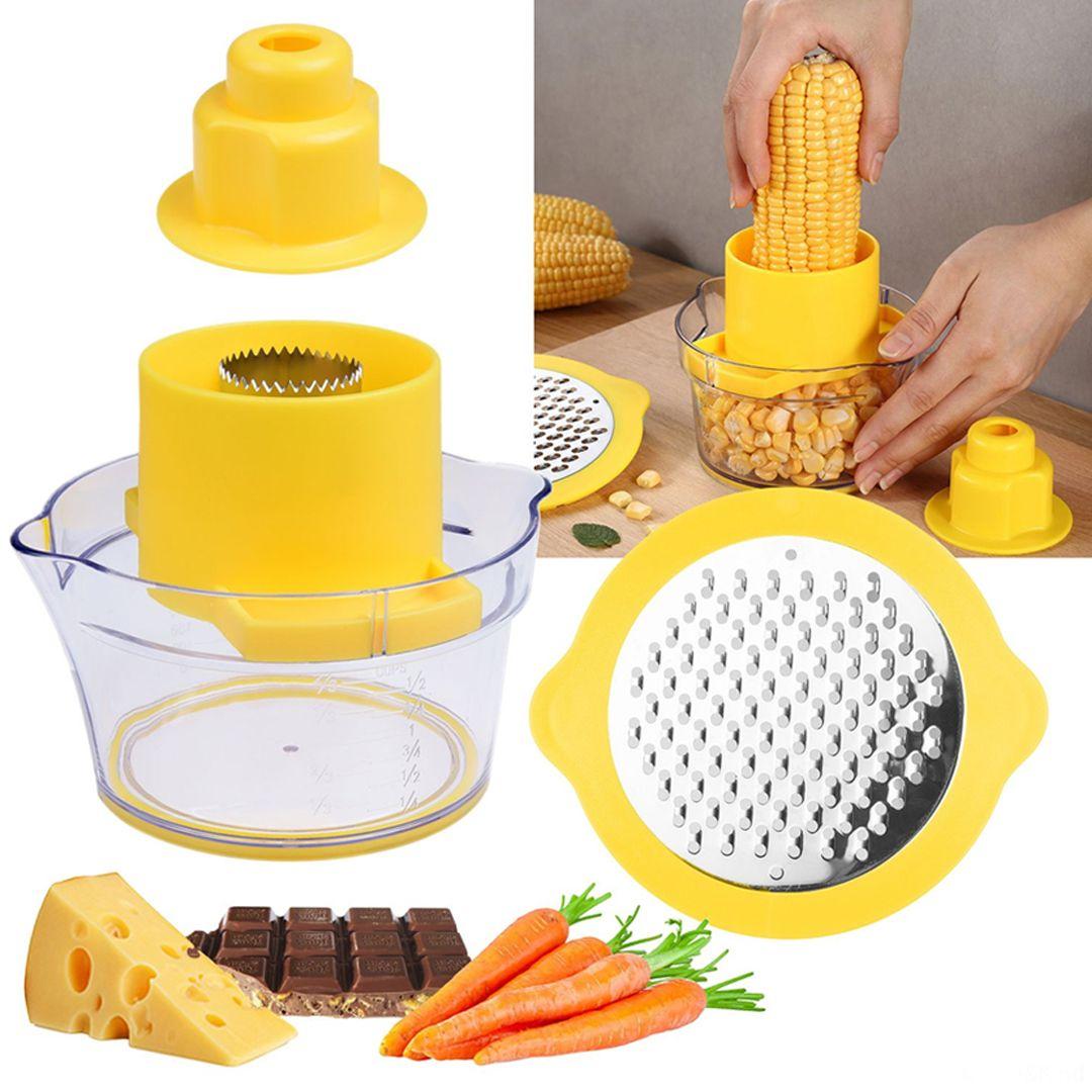 - Multi-functional Tool: Works as a corn grater, vegetable grater, ginger peeler, and garlic and fruit slicer, all in one device.