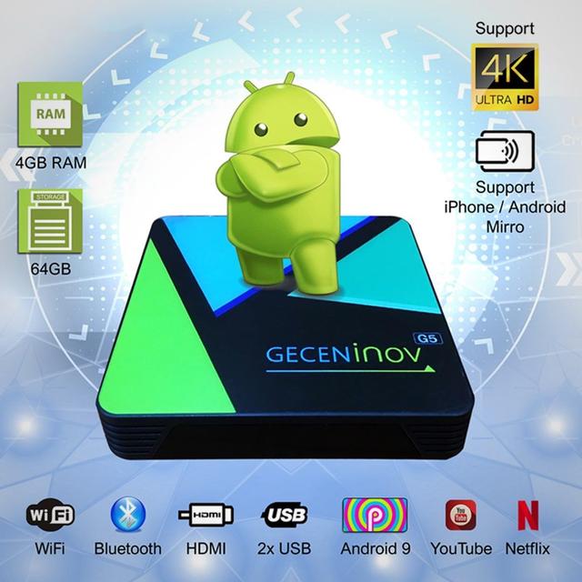 Are you looking for a complete entertainment experience? With the NHE GECEN INOV G5 Smart Receiver, you can enjoy 4K content and easy connectivity with all your devices thanks to HDMI and USB ports, as well as the ability to stream content directly from your iPhone or Android phone. The receiver comes with Android 9, bringing you the latest apps like Netflix and YouTube directly to your screen with fast and stable internet.