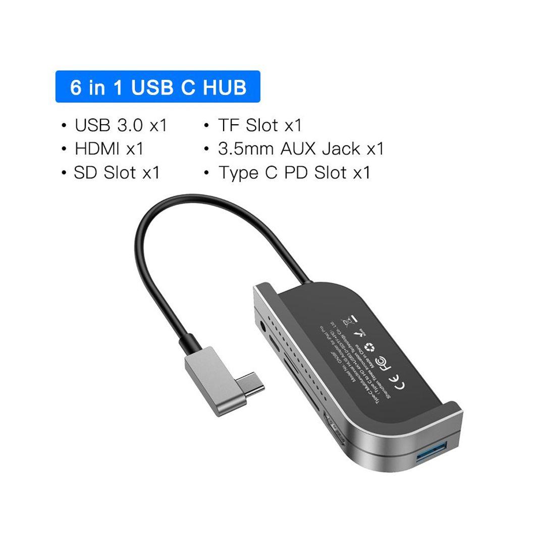 - Connectivity: Multi-port, with 6 ports to meet all your needs: HDMI, USB 3.0, SD Slot, TF Slot, 3.5mm AUX port, and Type-C PD port.