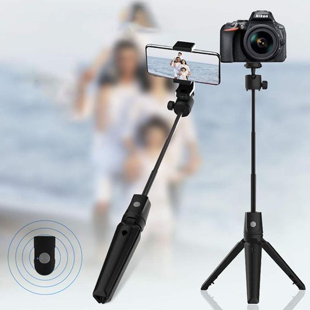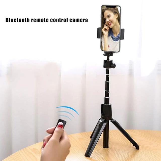 Make your photos and videos more professional with this 2-in-1 selfie stick, which combines an extendable selfie stick and a tripod. It has a sleek and modern design. With a Bluetooth remote control, you can easily take photos without touching your phone. It's suitable for selfies, vlogging, live streaming, and video calls, making it the perfect addition for all photography enthusiasts.