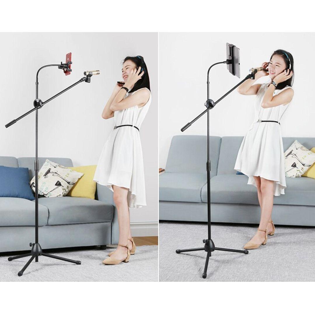 3 in 1 Proffessional Tripod Microphone & Phone Stand (Floor Type) Support With Angle Adjustment