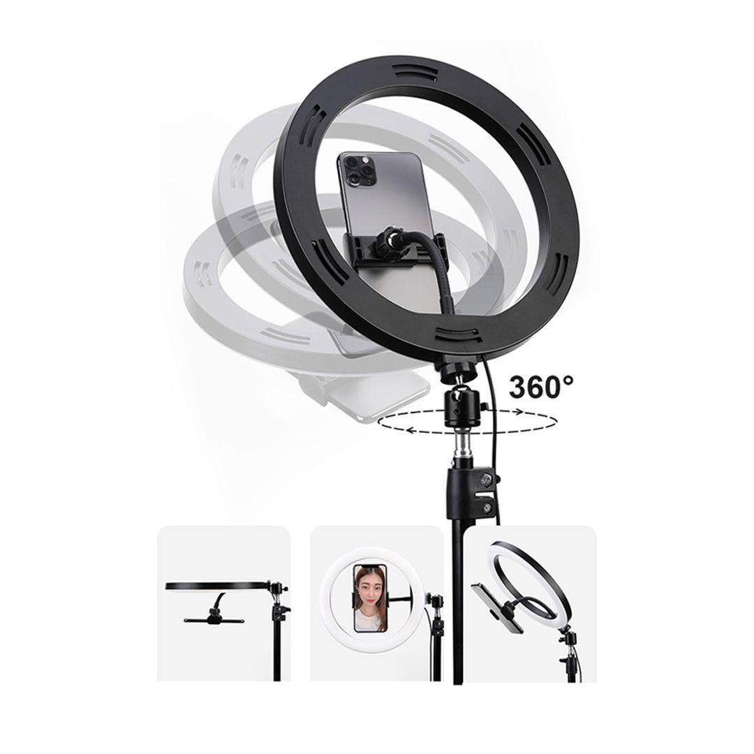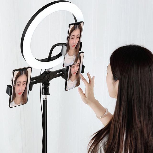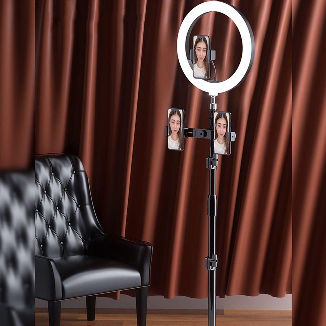 ROCK Dimmable LED Selfie Ring Light Video Live Tripod Fill Light (Multi-Phone-Holder Type)