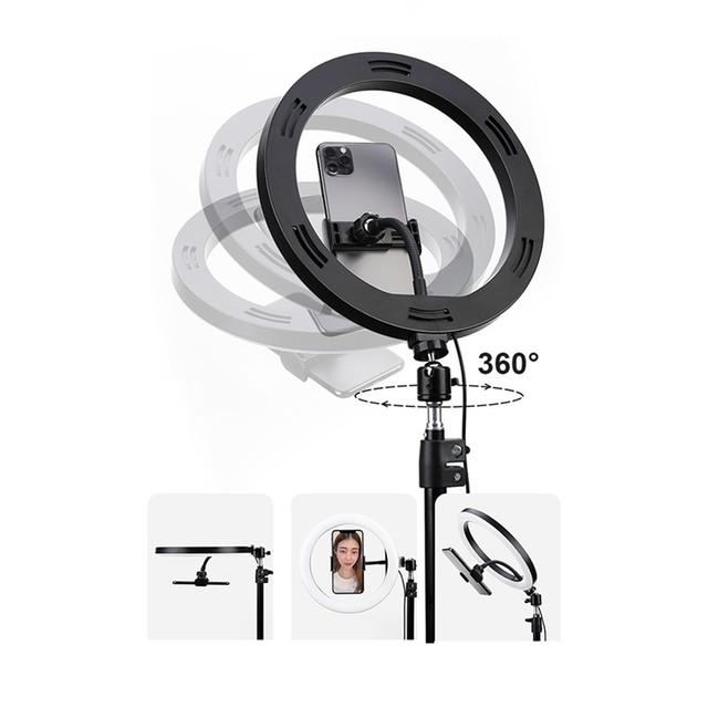 If you're looking for a durable and practical ring light and phone holder that helps you live stream, film, and create content with ease, the ROCK phone holder is the perfect choice. Made of sturdy metal and a stable triangular structure, it offers 9 adjustable brightness levels to create the perfect lighting for any environment. It also features 360-degree rotation.