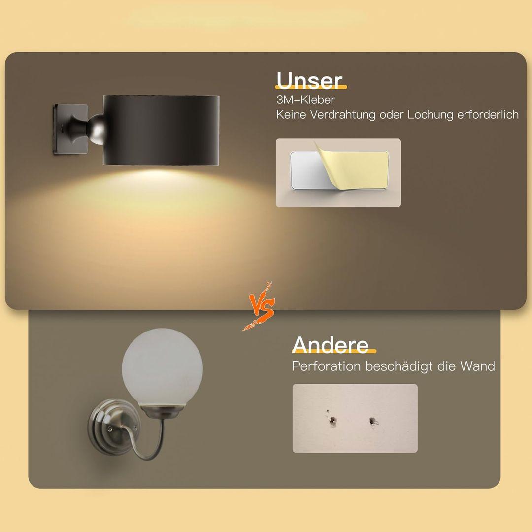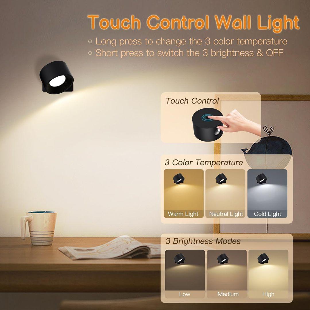 LED Wall Light with 3 Adjustable Lighting Modes 360° with Type-C Charging Port