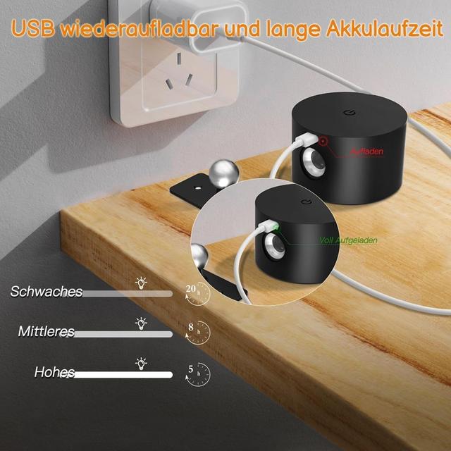 - Installation: The lamp is easily installed using a magnetic holder and strong 3M adhesive, you can remove it from the holder to charge it or use it as a portable light.