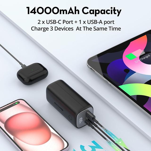Don't worry about running out of battery on the go with the RAVPower RP-PB208 14000mAh Power Bank with 30W PD Fast Charging Technology, you can charge your devices quickly and efficiently. It features a compact, lightweight, and durable design, making it ideal for travel, work, and daily life.
