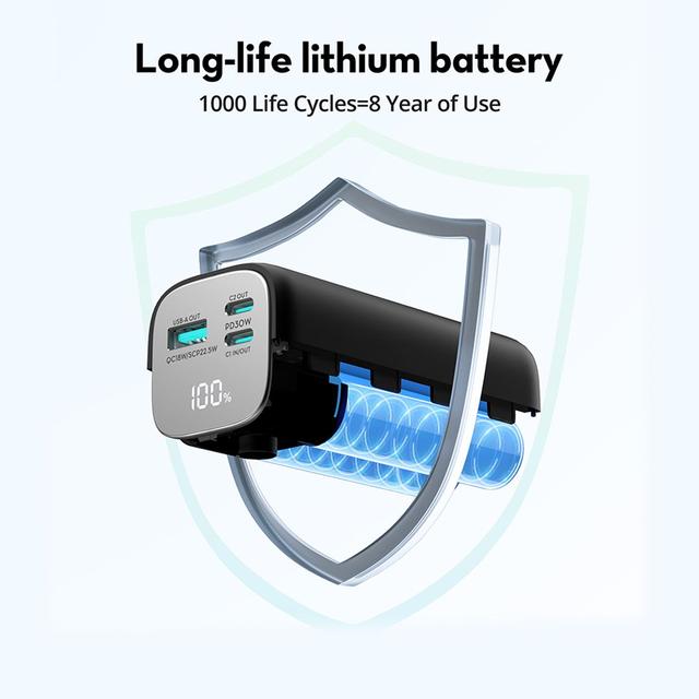 - Battery: It comes with a high capacity of 14000mAh with 30W for long-lasting charging without the need to constantly recharge the power bank.
