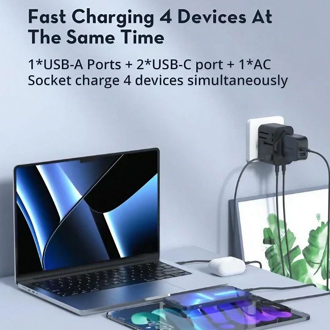 - Ports: Multi-port with two 100W USB-C ports, a USB-A port and a triple-port to charge multiple devices at the same time.