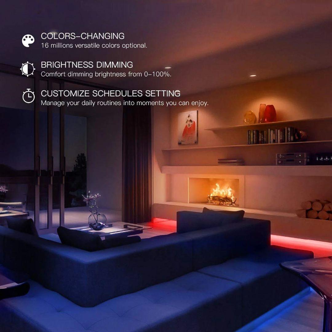 Add a unique aesthetic touch to your home with the smart lighting strip, which combines modern design with powerful multi-color lighting. This strip features smart control via WiFi using your smartphone or tablet, and supports voice commands via Alexa, Google Assistant, and Apple Homekit, giving you the ease of turning the lights on and off with the push of a button or just your voice.