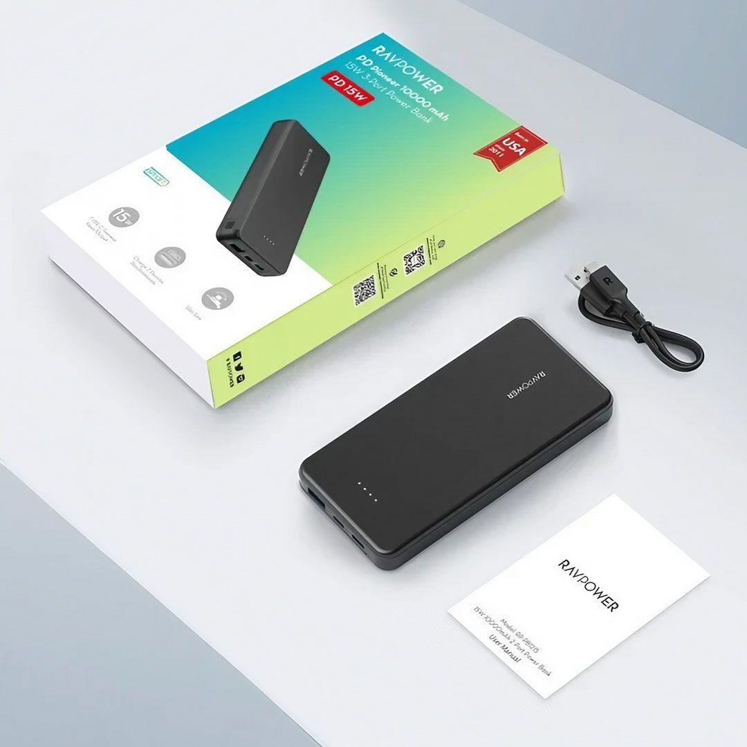 RAVPower RP-PB1215 PD Pioneer 10000mAh 15W 3-Port Power Bank (Type-C+USB+Micro)